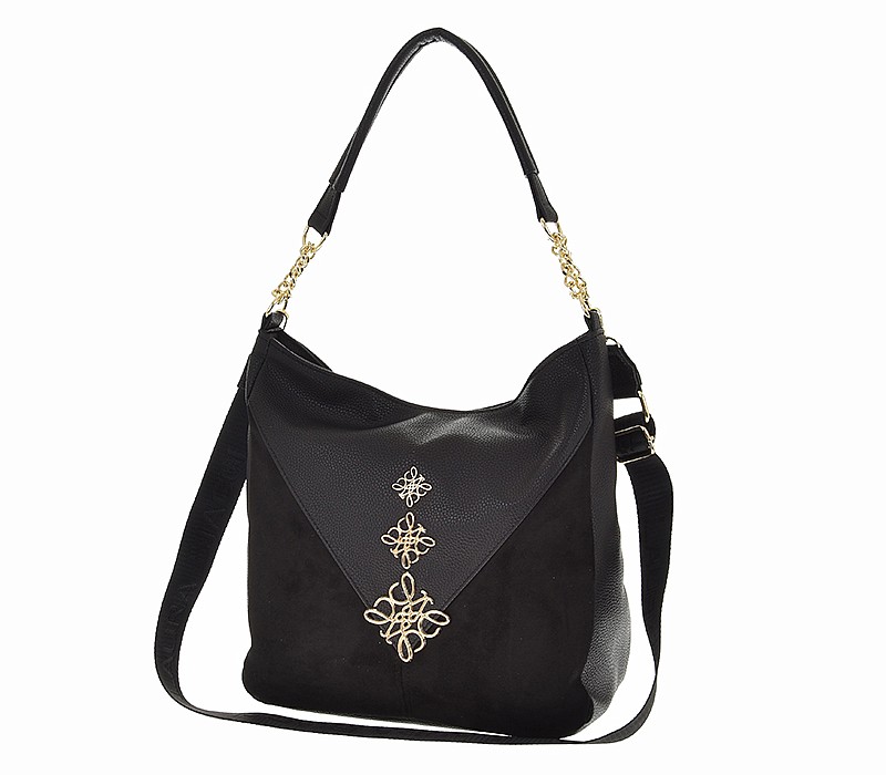 - dámska kabelka vyrobená z mäkkej eko kože v kombinácii s brúsenou kožou /semiš/ na prednom diele
