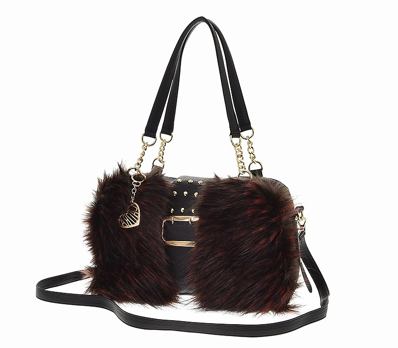 Kabelka Laura Biaggi AB936/3 farba čierna doplnená bordó kožušinkou