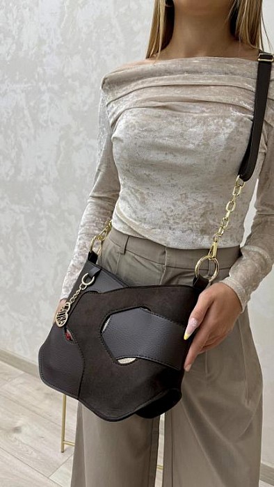 Kabelka Laura Biaggi F319/2 farba čokoládová v kombinácii so semišom a tmavo zlatými doplnkami