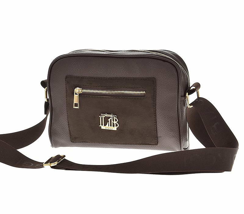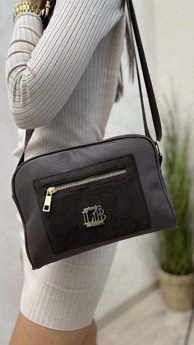 - dámska cross body kabelka vyrobená zo štruktúrovanej eko kože, na prednej časti vrecko so zipsom vsadené v brúsenej koži / semiš /, zlatý znak LB