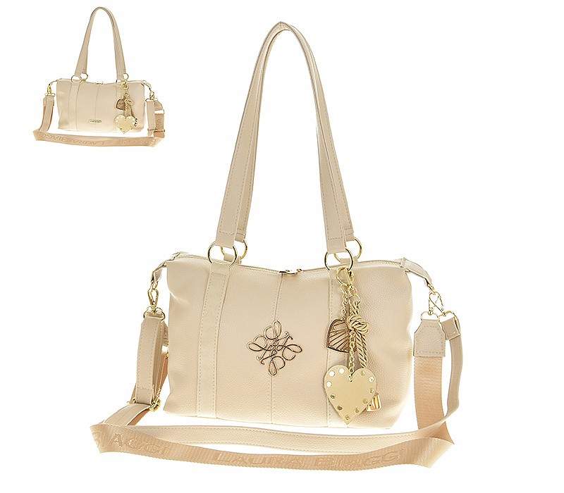 - dve stredne dlhé uši - do ruky aj cez rameno z eko kože, jedno dlhé nastaviteľné cez rameno a dlhý nastaviteľný textilný popruh s logom Laura Biaggi