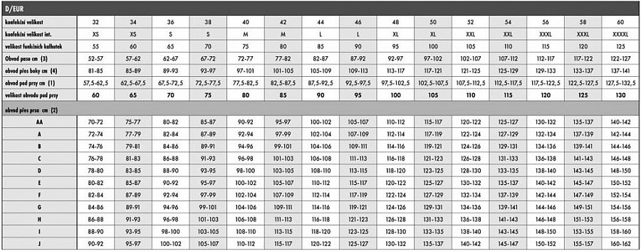 | OBVOD PRES PRSA(1) - OBVOD POD PRSY (2) (1-2=....cm) | VELIKOST KOŠÍČKU |
